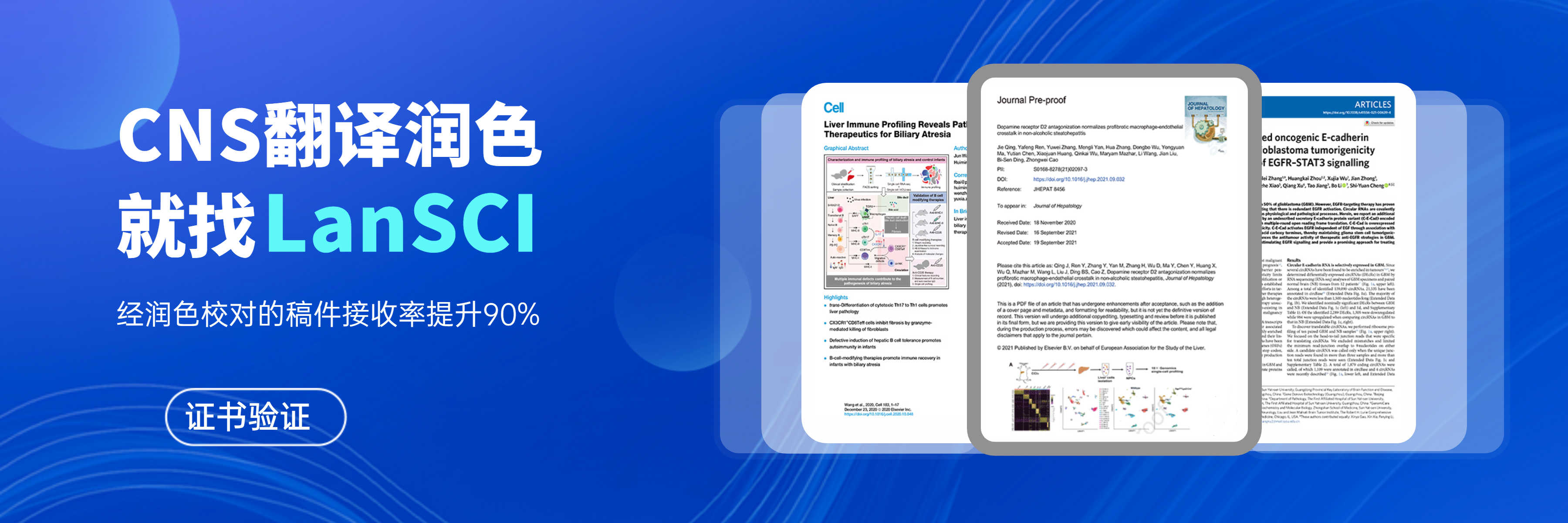 朗思翻译咨询有限公司(Language Science),是为非英语国家科研工作者提供英文学术论文润色、翻译、发表支持服务的全球知名提供商。携手各国顶尖科学家及期刊编辑,共同打造了一支专业性强、经验丰富、学科齐全的专业编辑团队,致力于打造一流的专业学术科研服务品牌。我们为科研学者、高校、出版商和企业提供英文润色、学术翻译和SCI/SSCI/EI期刊论文发表指导和科研传播服务。我们已经为来自全球超过150个国家的10万名作者提供服务,润色完成超过30万份稿件...